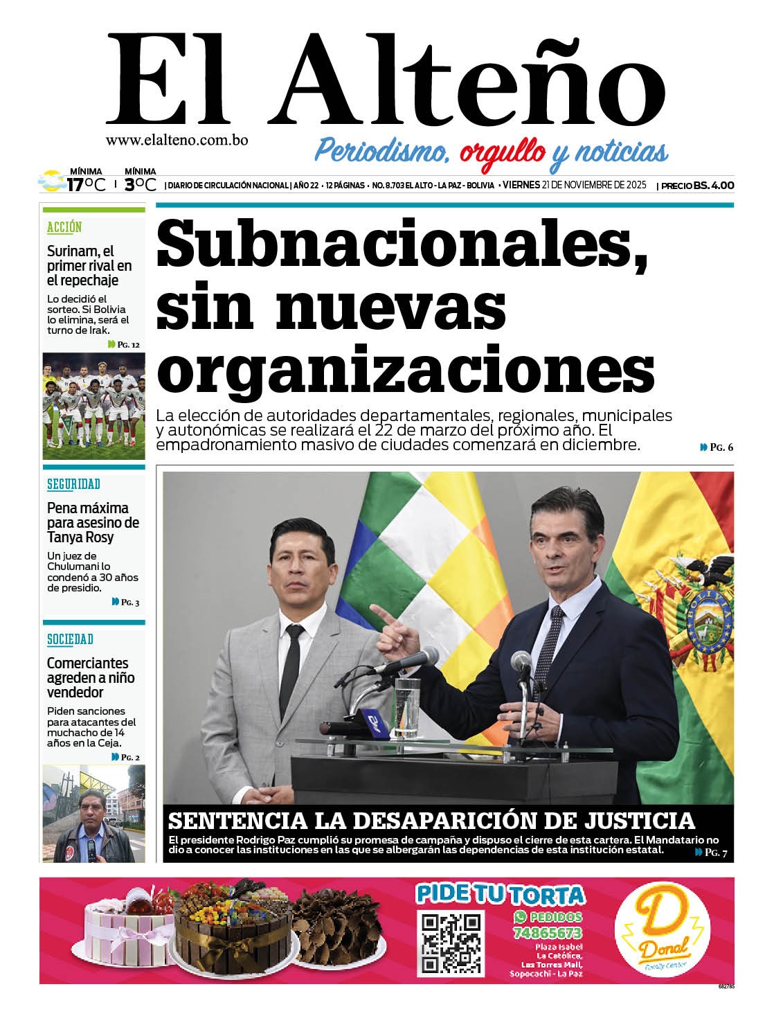01 Nov 2025/ FarándulaEn la zona de Miraflores, La Paz, un grupo de 20 reposteros de la panadería Lecker Brot elaboró la t´antawawa más grande del país, utilizando 45...