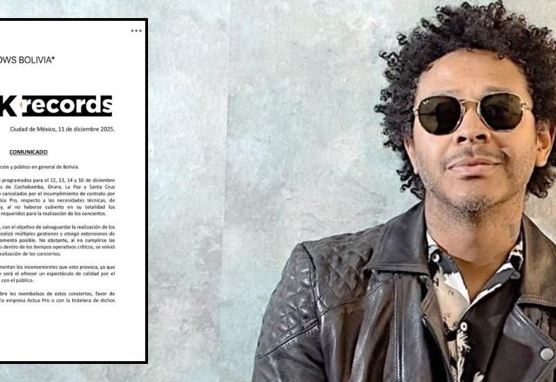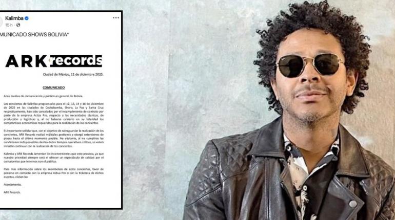 12 Dic 2025/ FarándulaLos conciertos del cantante mexicano Kalimba, programados para el 12, 13, 14 y 16 de diciembre en Cochabamba, Oruro, La Paz y Santa Cruz, fueron...