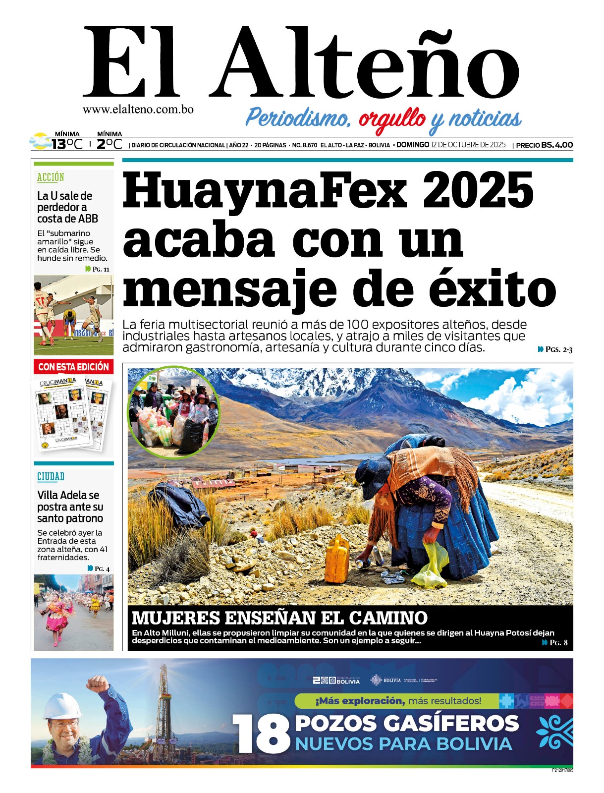 29 Sep 2025/ FarándulaEl El Alto, fue reconocido como “Destino Turístico Regional” por el Gobierno central. La distinción se entregó en el marco del Día Mundial del...