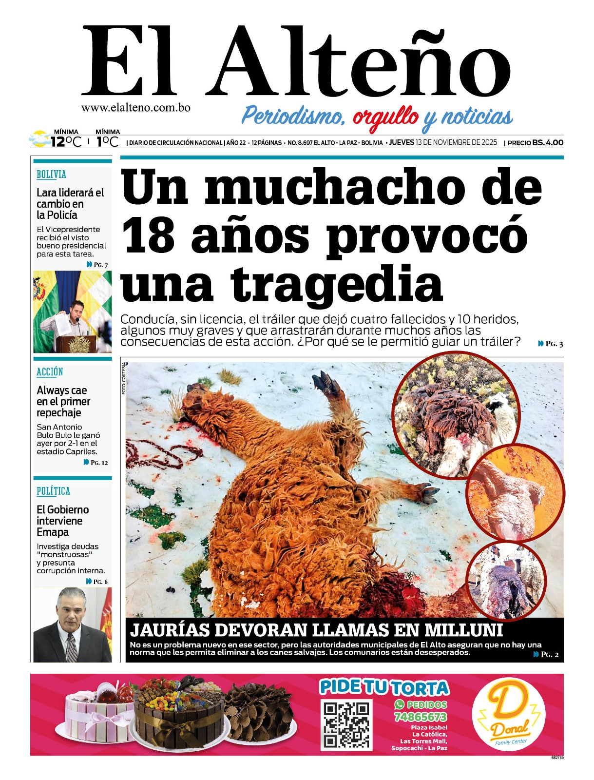 01 Nov 2025/ FarándulaEn la zona de Miraflores, La Paz, un grupo de 20 reposteros de la panadería Lecker Brot elaboró la t´antawawa más grande del país, utilizando 45...