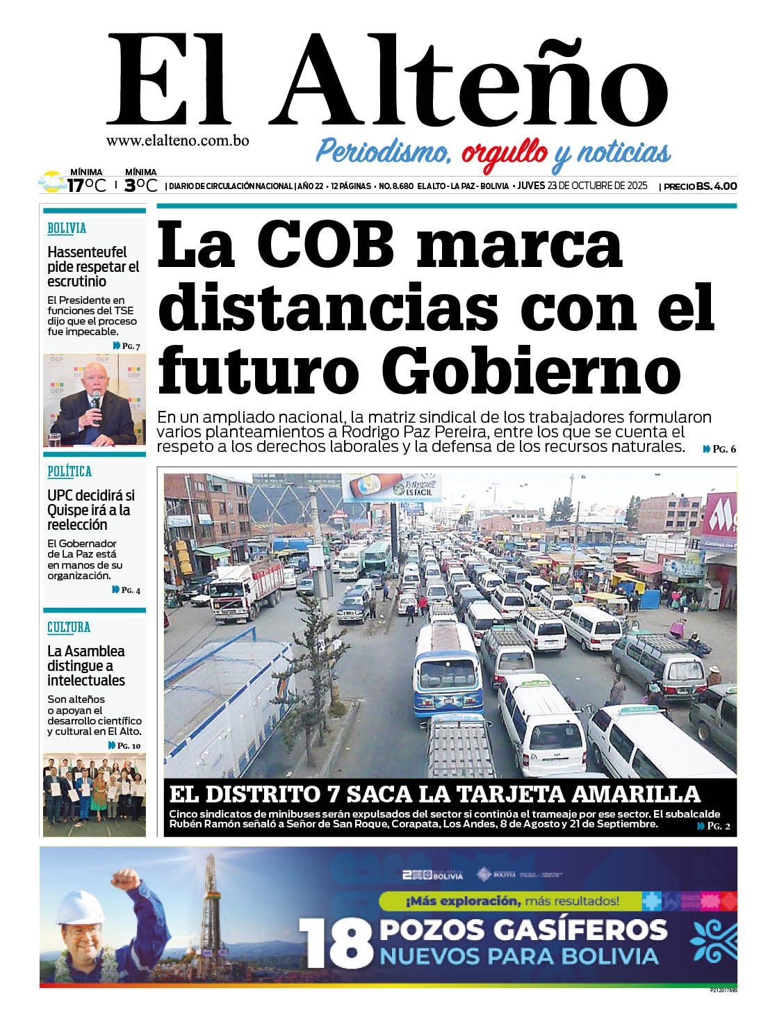 29 Sep 2025/ FarándulaEl El Alto, fue reconocido como “Destino Turístico Regional” por el Gobierno central. La distinción se entregó en el marco del Día Mundial del...