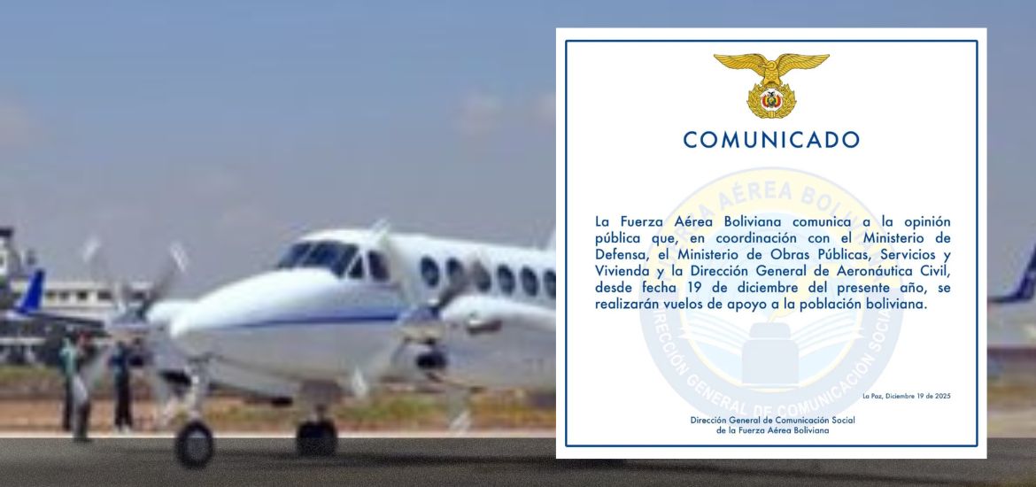 La Fuerza Aérea Boliviana anunció la puesta en marcha de operaciones aéreas destinadas a brindar apoyo a la población en distintos puntos del país, en respuesta al contexto actual. La información se dio a conocer el viernes mediante un pronunciamiento oficial. Estas acciones contarán con la...