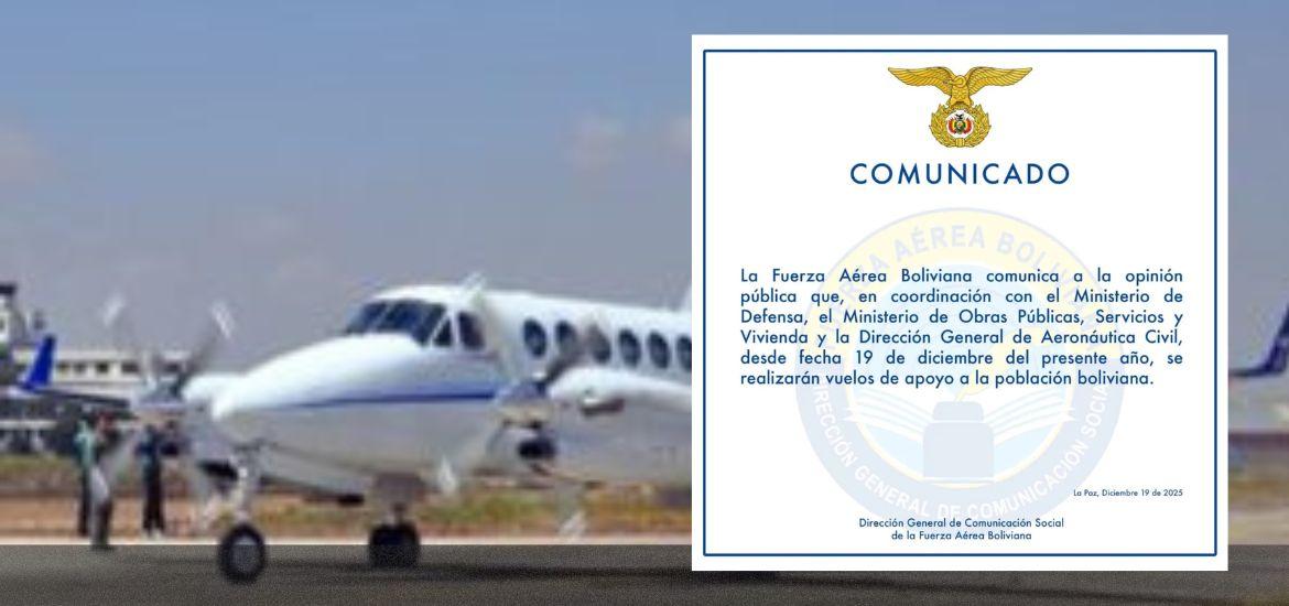La Fuerza Aérea Boliviana anunció la puesta en marcha de operaciones aéreas destinadas a brindar apoyo a la población en distintos puntos del país, en respuesta al contexto actual.