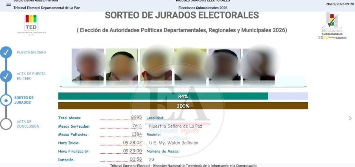El Tribunal Supremo Electoral (TSE) realiza este viernes el sorteo de más de 200.000 jurados electorales que estarán a cargo de administrar las mesas de sufragio en las elecciones subnacionales previstas para el 22 de marzo.