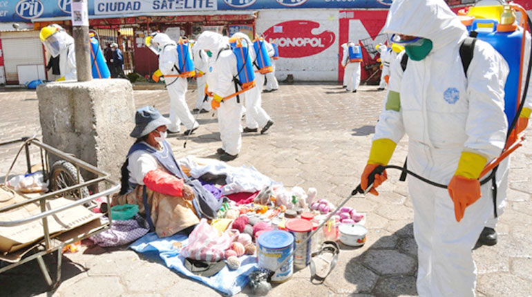 Mientras el virus se irradia en la urbe alteña, continúa el fumigado de calles y los centros de abasto. La tarea se realizó ayer en los distritos municipales 3 y 7 que fueron desinfectadas por personal de la Alcaldía alteña y trabajadores de la empresa Trebol.