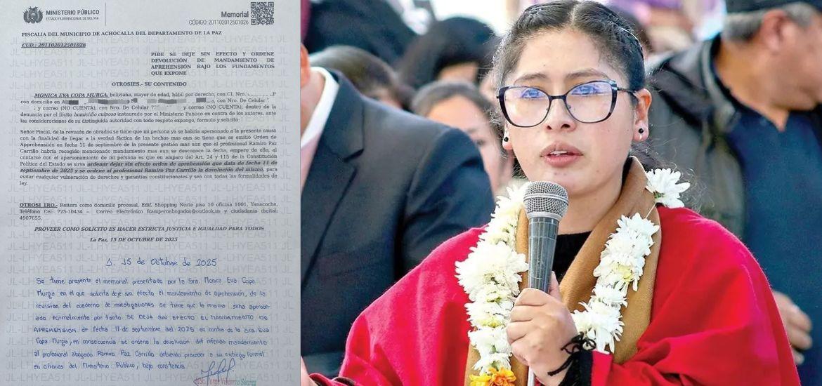 La Fiscalía de La Paz anuló la orden de aprehensión que pesaba sobre la alcaldesa de El Alto, Eva Copa, dentro del proceso abierto por la mazamorra registrada en el municipio de Achocalla en febrero de 2024, hecho que dejó tres personas fallecidas.