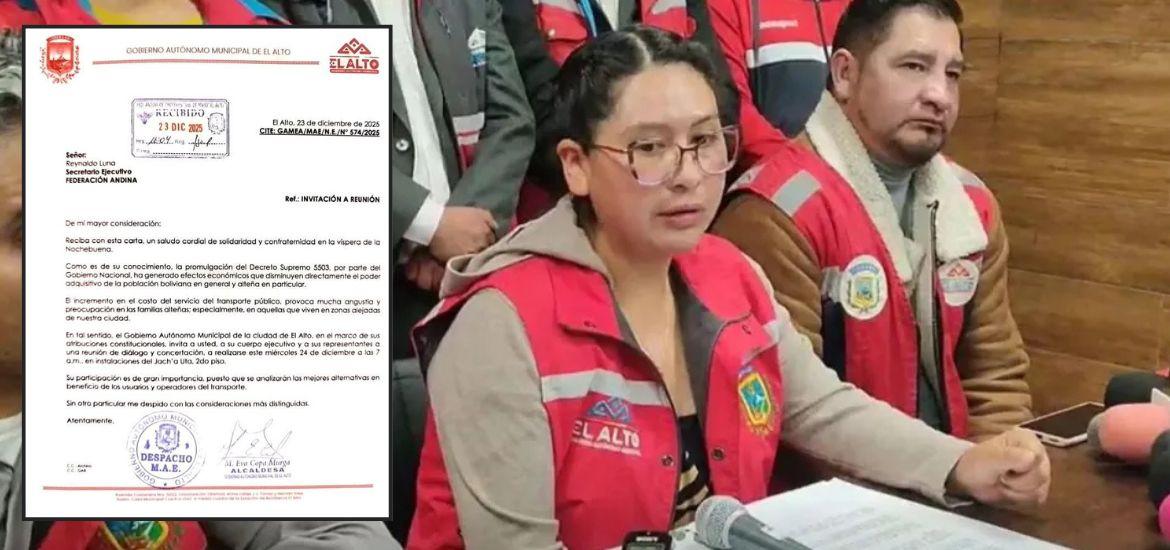 La alcaldesa de El Alto, Eva Copa, llamó al sector del transporte público a una reunión de diálogo para analizar el impacto del Decreto Supremo 5503 en la economía de las familias alteñas y buscar acuerdos.
