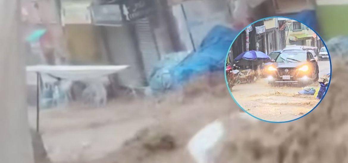 El aguacero comenzó alrededor de las 16:00 y se extendió por varias horas, lo que provocó inundaciones en distintas zonas y convirtió varias calles en verdaderos cauces. En el área comercial, vendedores intentaron resguardar sus productos ante el avance del agua, aunque se reportaron pérdidas materiales.