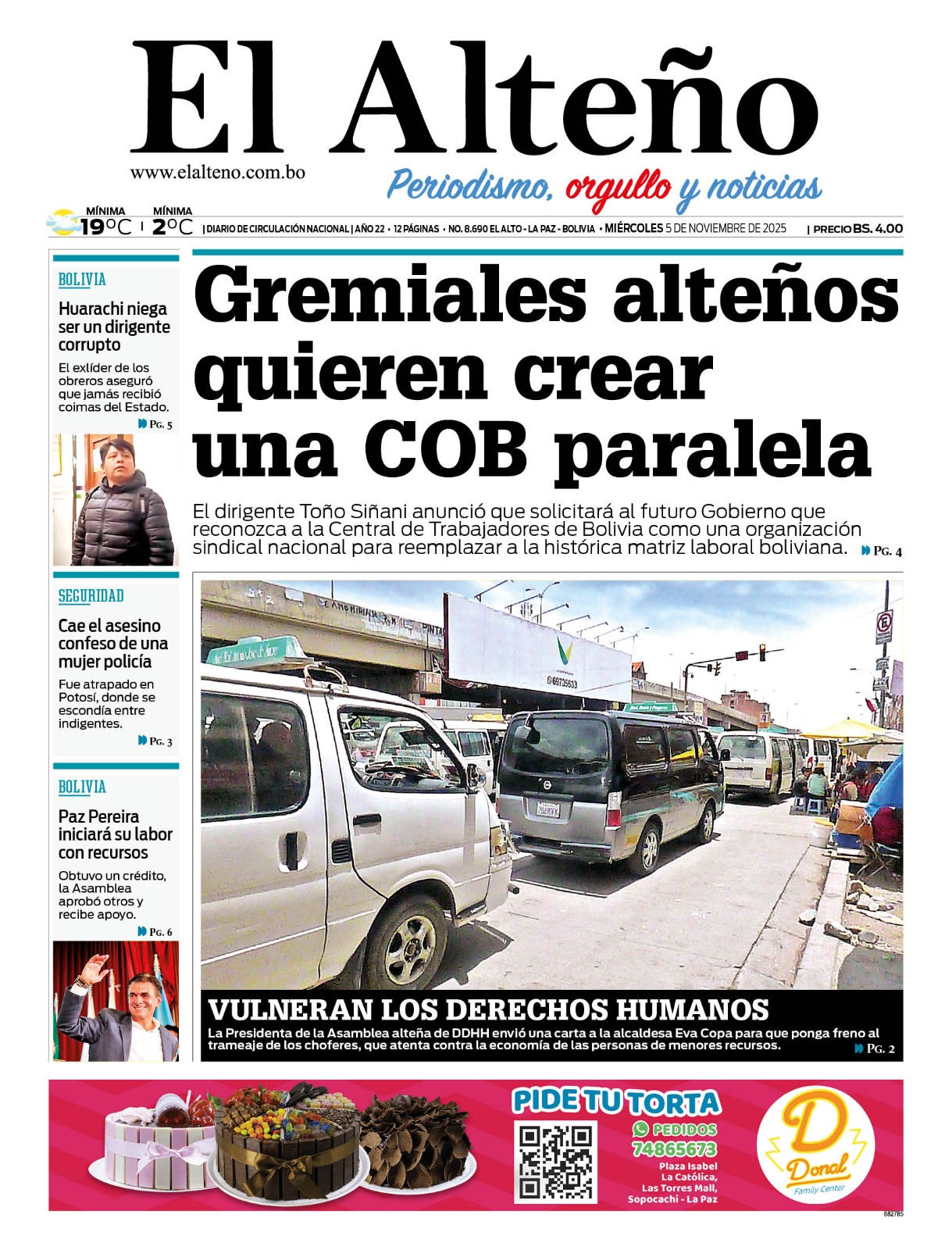 01 Nov 2025/ FarándulaEn la zona de Miraflores, La Paz, un grupo de 20 reposteros de la panadería Lecker Brot elaboró la t´antawawa más grande del país, utilizando 45...