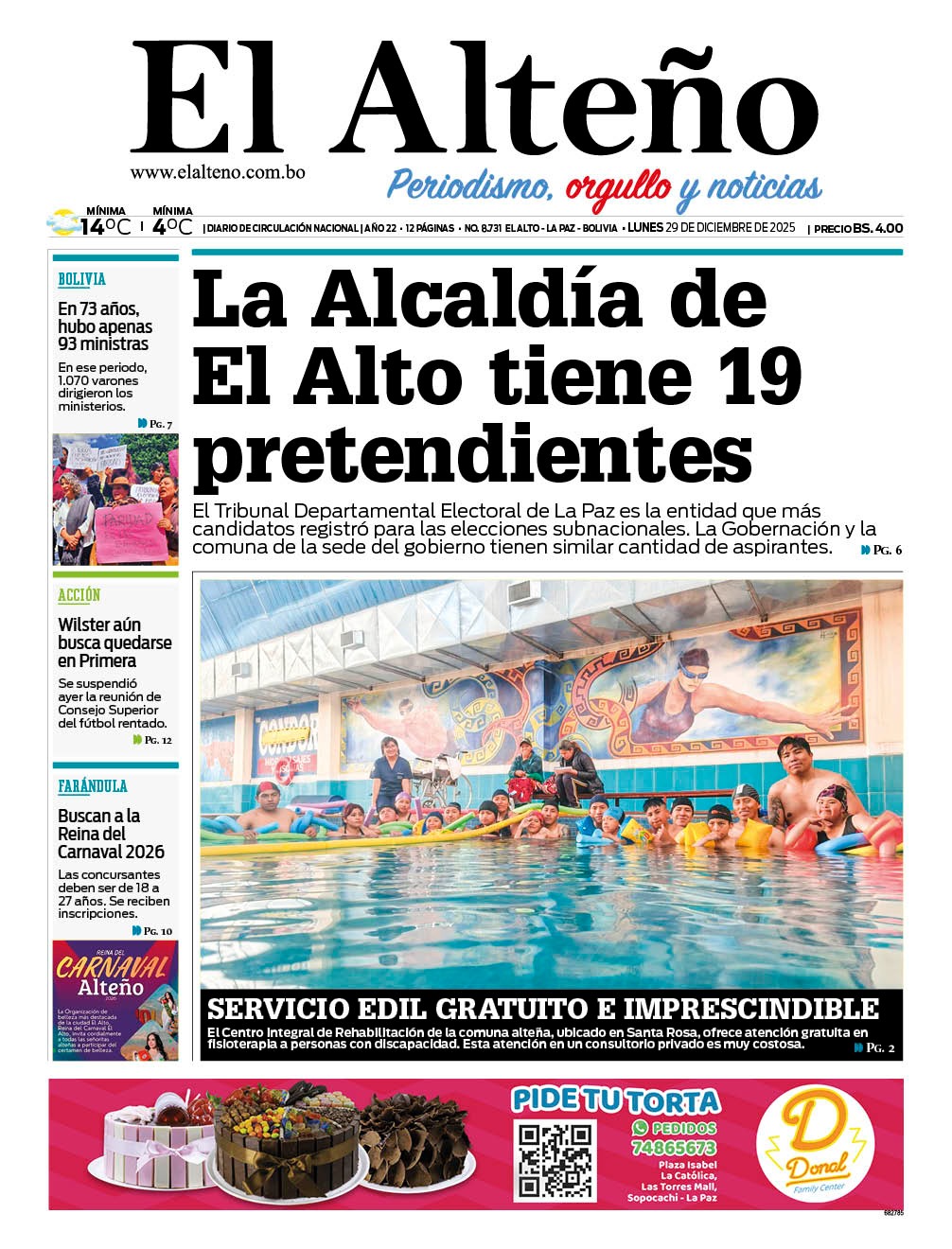 12 Dic 2025/ FarándulaLos conciertos del cantante mexicano Kalimba, programados para el 12, 13, 14 y 16 de diciembre en Cochabamba, Oruro, La Paz y Santa Cruz, fueron...
