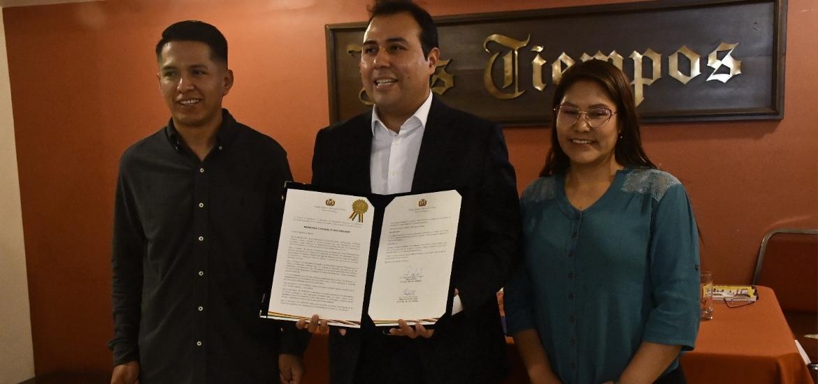 El presidente de la Cámara de Senadores, Andrónico Rodríguez, otorgó ayer al periódico Los Tiempos un Homenaje Camaral por su invaluable labor de mantener informada a la población por 82 años.