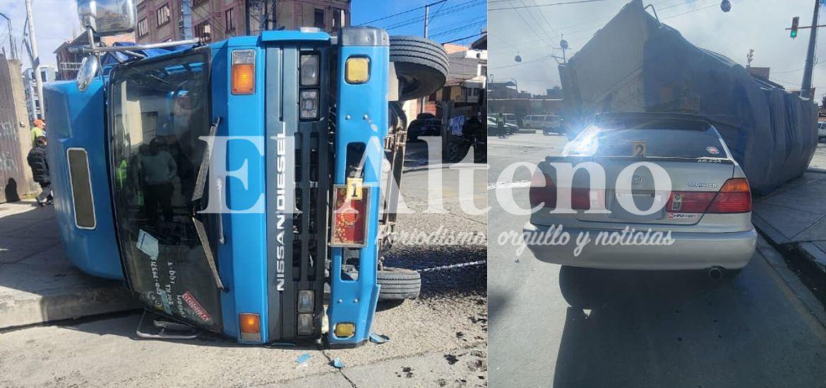 Un camión perdió el control al intentar esquivar un bache en la avenida Tiahuanacu de El Alto y terminó volcando sobre otro vehículo, informaron las autoridades de tránsito. El accidente ocurrió en la zona Santiago Primero, calle 122.