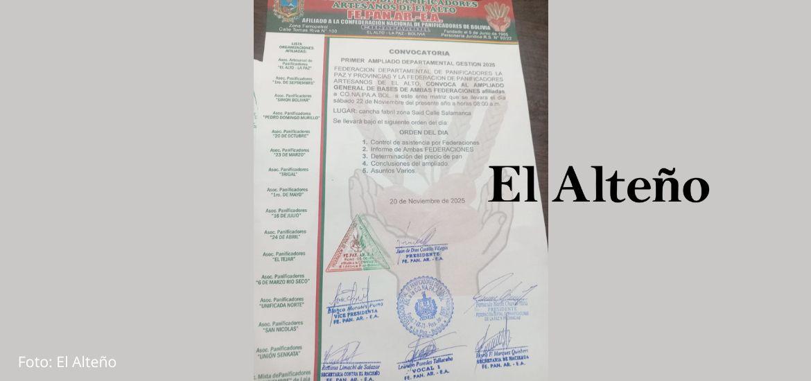 La convocatoria fue realizada por la Federación Departamental de Panificadores de La Paz y Provincias y la Federación de Panificadores Artesanos de El Alto, ambas afiliadas a la Confederación Nacional de Panificadores de Bolivia (Conapabol). El encuentro comenzará a las 08:00 en la cancha fabril de la zona Said, en la sede de Gobierno.