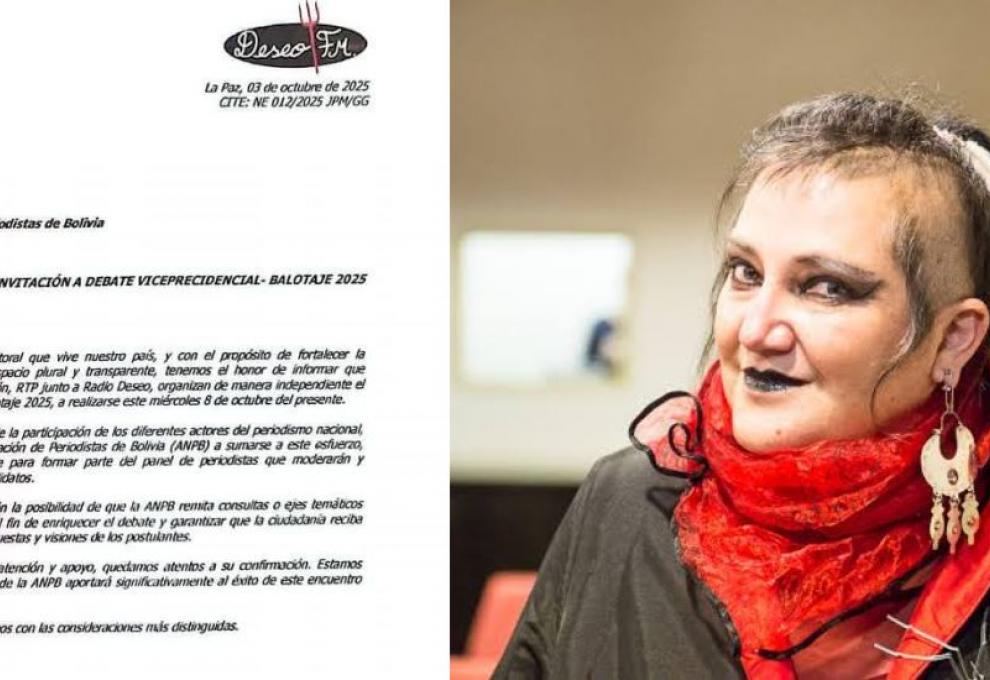 La activista María Galindo y la red RTP anunciaron que el debate vicepresidencial del balotaje 2025 se llevará a cabo el miércoles 8 de octubre.   Mediante una carta dirigida a la presidenta de la Asociación Nacional de Periodistas de Bolivia (ANPB), Zulema Alanes, los organizadores informaron...