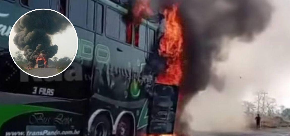 Un bus de la empresa Trans Pando que viajaba de Santa Cruz a Trinidad se incendió la mañana de este sábado cerca de la zona Surucusi, a unos 10 kilómetros de El Puente, en el municipio de Guarayos.