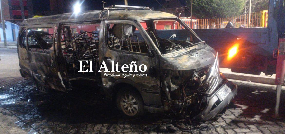 El hecho se registró cerca de la plaza Coca Cola de ese barrio. Según vecinos del sector, al motorizado le rociaron alcohol antes de incendiarlo. Las llamas consumieron por completo el vehículo, de marca King Long.