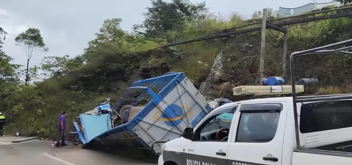 De acuerdo con el reporte preliminar de Tránsito, el siniestro ocurrió en un sector con pendiente y curvas, donde el conductor habría perdido el control del vehículo. El camión terminó saliéndose de la vía y quedó volcado a un costado del camino.