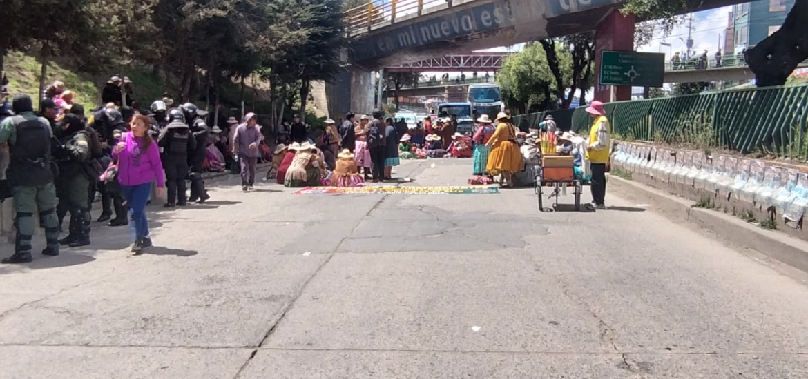 La Federación de Gremiales Taypi de El Alto instaló este miércoles un bloqueo en el carril de bajada de la Autopista La Paz–El Alto en rechazo al Decreto Supremo 5503.