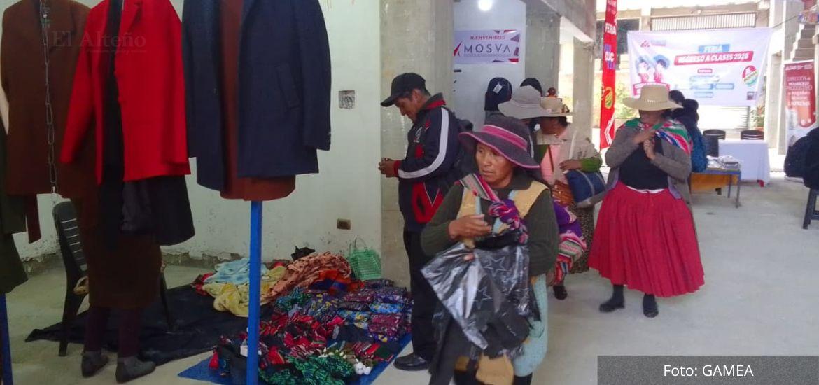 La Alcaldía de El Alto abrió la Feria de Regreso a Clases en la galería Shalom, ubicada en el Distrito 6, a una cuadra de la avenida Alfonso Ugarte. En este espacio, padres de familia y estudiantes pueden encontrar uniformes, mochilas, zapatos, chamarras y otros artículos escolares a precios accesibles.