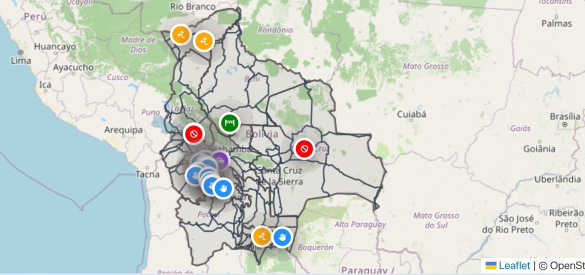 La Administradora Boliviana de Carreteras (ABC) informó que este lunes se reportan catorce puntos de bloqueo en carreteras, con mayor concentración en el departamento de Oruro.