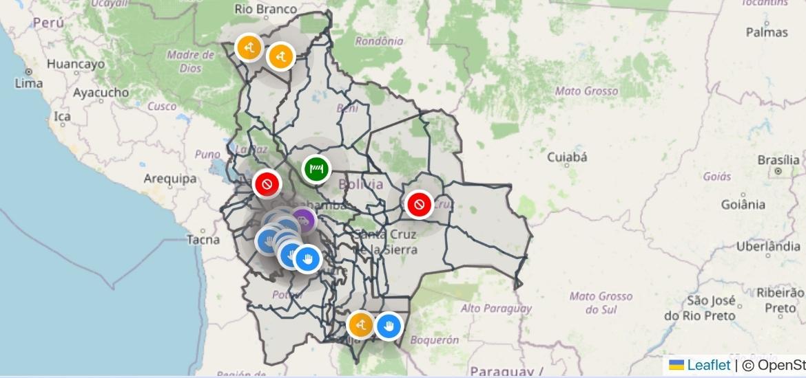De acuerdo con el reporte, trece de estos cortes se ubican en rutas orureñas, donde el sector del transporte acata un paro en protesta por la calidad del combustible. La medida afecta la circulación vehicular en distintas vías y genera dificultades para los pasajeros.